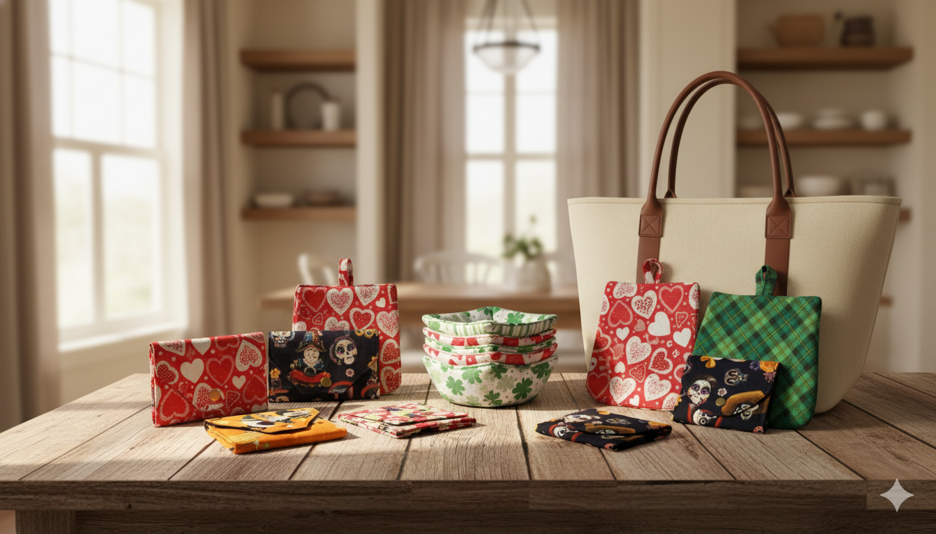 Shop Shop Clear Grab & Go | Kitchen Treasures | Travel Treasures | Filters Categories Select a Category Grab & Go Kitchen Treasures Travel Treasures Filter Clear Filter iPad Case $28.00 Unlined Zipper Pouch $8.00 Lined Zipper Pouch $18.00 Grocery Tote $15.00 Formal Clutch $35.00 Travel Shoe Bag $15.00 Potholders $15.00 Bowl Cozy $15.00 Zip Around Wallet $25.00 Mini Wallet $25.00 Phone Pocket Pouch $35.00 Sling Purse $30.00 Tulip Purse $35.00 Hanging Towels $15.00 Tri-Color Pouch $30.00 No results found No results match your search. Try removing a few filters.